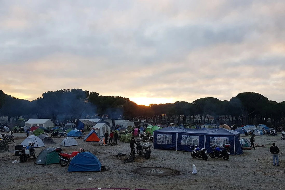 Se empezaban a ver los primeros motoristas acampados el miércoles por la tarde o incluso antes, pero el jueves se iban llenando las instalaciones de tiendas, hogueras y grupos. Aquello iba tomando forma. El viernes se aceleraba la llegada de acampados y las motos iban inundando de acampados y las motos iban inundando las calles y los hoteles de Valladolid.