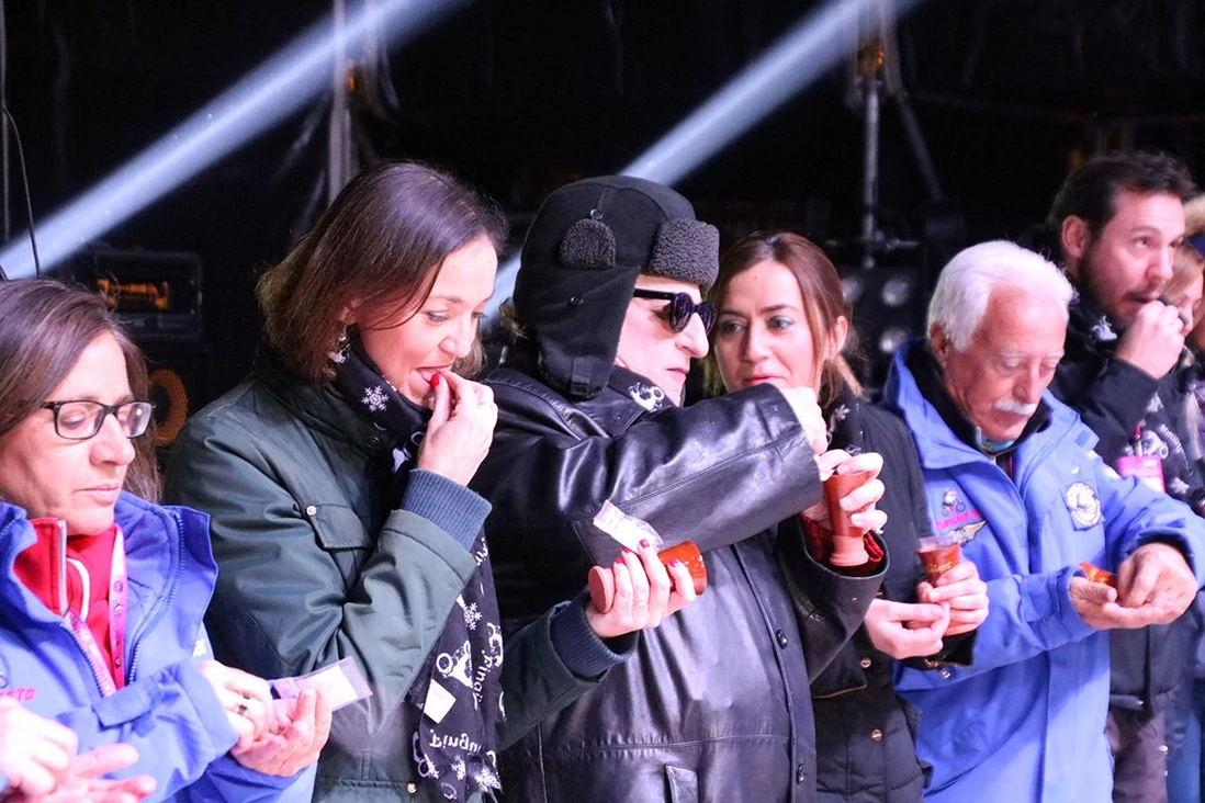 La noche del viernes se brindó con el espumoso de nuestra tierra después de comerse los 12 piñones al son de las campanadas. En el escenario a los miembros del club les acompañaban la Ministra de Industria, Comercio y Turismo, Reyes Maroto; la Delegada del Gobierno para Castilla y León, Virginia Barcones; el Alcalde de Valladolid y el invitado que posteriormente amenizaría la fiesta: Javier Gurruchaga. Todos ellos brindaron por el nuevo año motero así como lo hacían todos los Pingüinos que llenaban la plaza. No había ni un hueco y todo el mundo estaba entregado, mucho más aún cuando la orquesta y el Sr. Gurruchaga comenzaron a sonar, poniendo el calor a la fría noche vallisoletana.