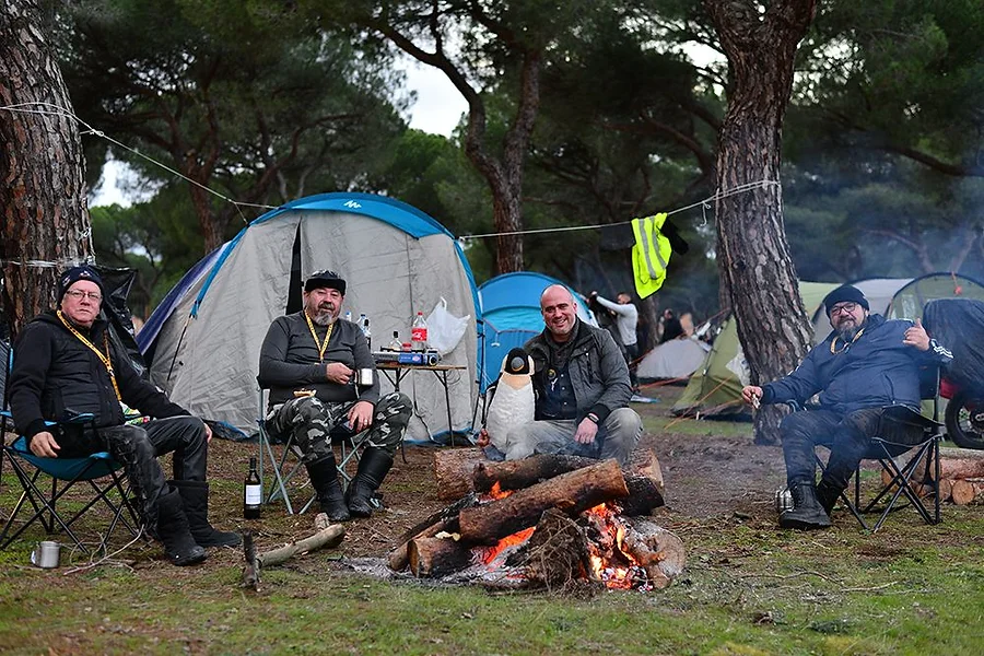 Y el momento más álgido del día fue la despedida del año motero y el recibimiento del nuevo con los 12 piñones y el espumoso de la tierra. Con una campa abarrotada, la fiesta continuaba, la gente bailaba y coreaba todas las canciones de “Los Pichas”, el grupo local. Y además las hogueras compartidas reflejaban el buen ambiente de grupos de amigos que llegan juntos, que reciben a otros a los que ven muy poco y que reciben a otros nuevos a quienes no habían visto nunca, todos ellos unidos por una filosofía de vida, el amor a las motos.