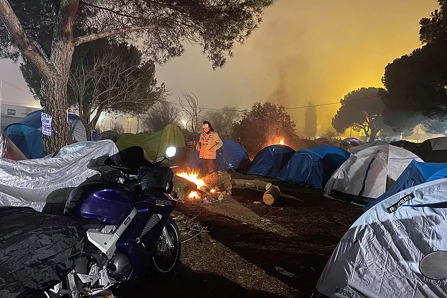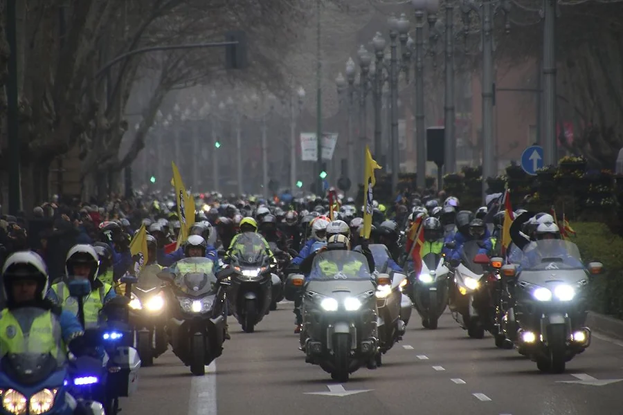 Y sin duda, el momento más emotivo de la concentración fue el desfile de antorchas, un homenaje en recuerdo de los compañeros caídos en la carretera durante el año, con reivindicación por parte de la organización reclamando a las instituciones la aportación de medios que palíen esas dolorosas cifras de fallecidos. En un marco incomparable, con la hermosa ciudad de Valladolid iluminada y su Academia de Caballería como mejor ejemplo. Homenaje que continuó después en la campa de Pingüinos con la quema de la falla a la que precedió la proyección de un video con las imágenes de muchos de los fallecidos, cedidas generosamente por las familias. La piel se erizaba y las lágrimas brotaban de muchos de los presentes.